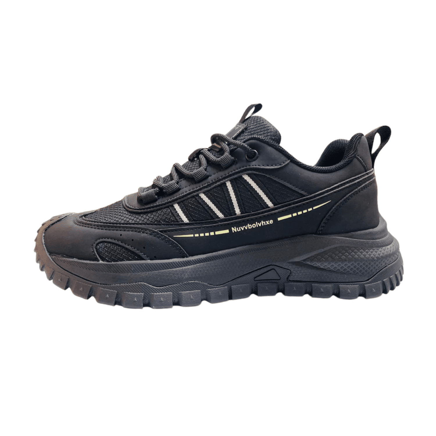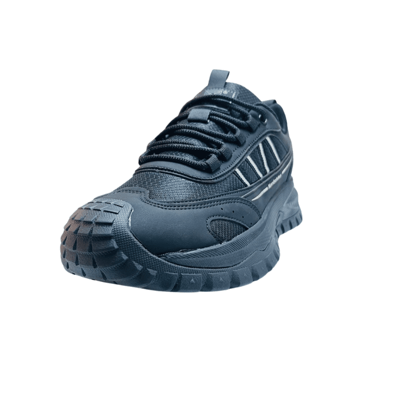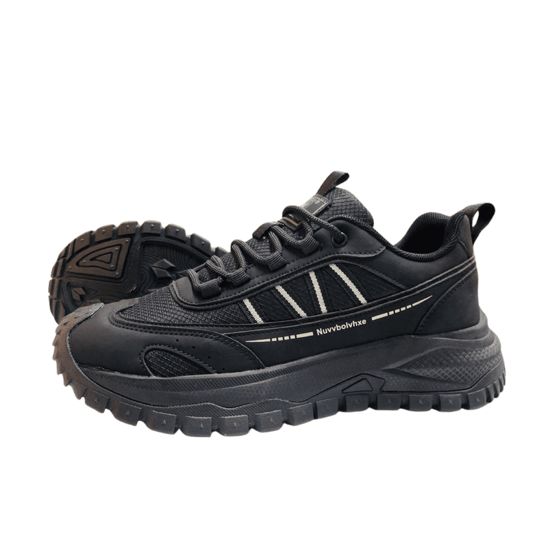 Make a bold statement with this rugged yet stylish black sports sneaker, designed for those who value both performance and street-ready fashion. Featuring a dynamic layered design, this shoe blends breathable mesh panels with durable synthetic overlays for enhanced strength and long-lasting wear.