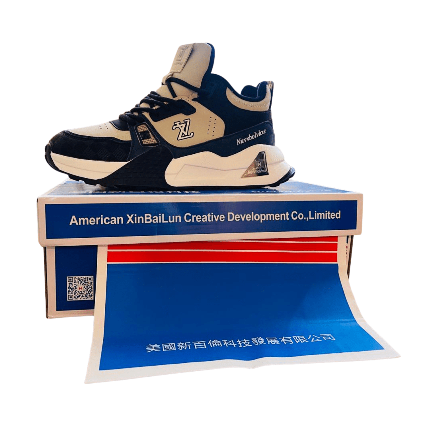 Make a bold statement with these American Xinbailun sneakers, designed for those who appreciate standout street style with everyday comfort. Featuring a striking blend of navy blue, cream, and black tones, this pair delivers a clean yet dynamic look that pairs effortlessly with casual and athleisure outfits.